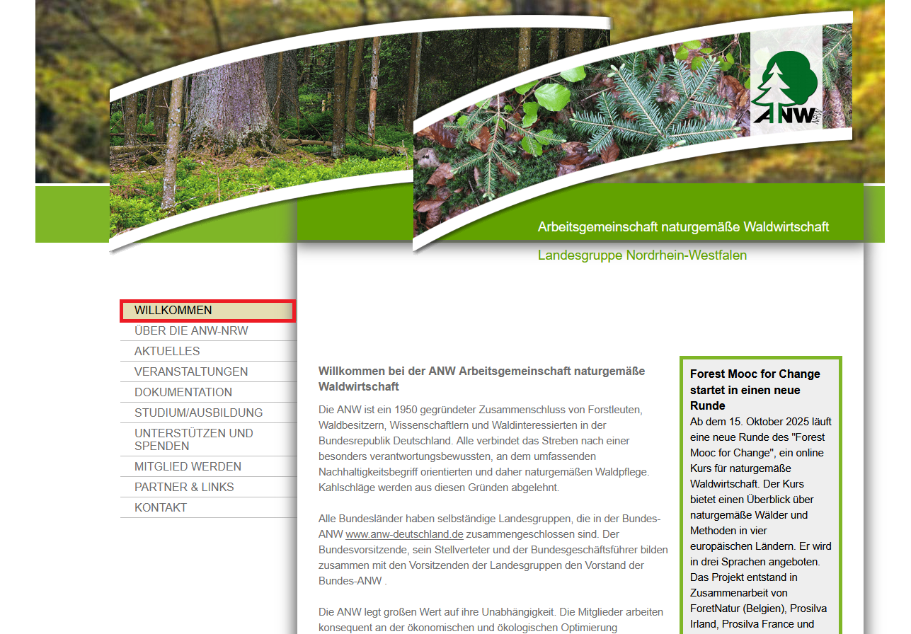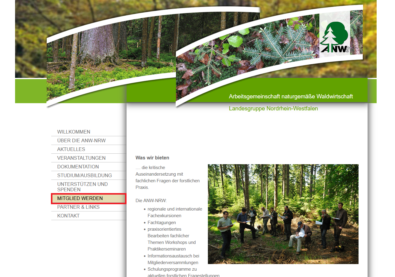 Dort werden die Aufgaben der ANW-NRW erklärt.