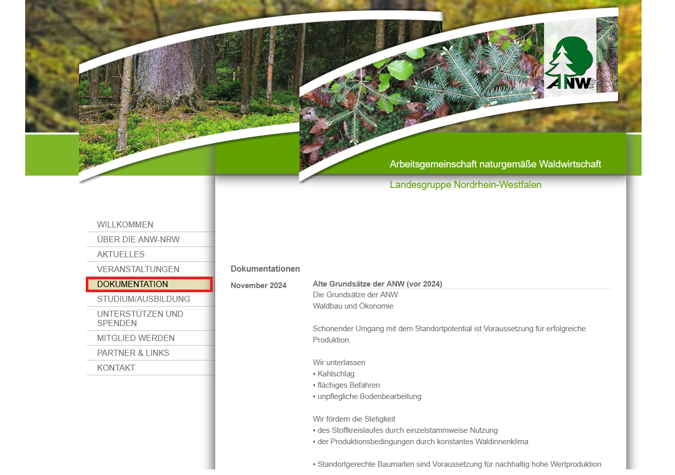Die Arbeits · Gemeinschaft naturgemäße Wald · Wirtschaft Landes · Gruppe Nordrhein-Westfalen wird auch ANW-NRW genannt-