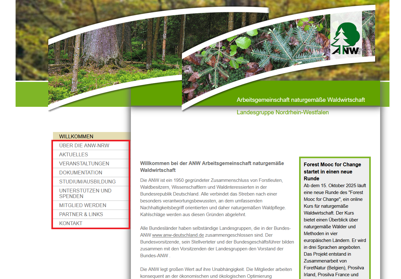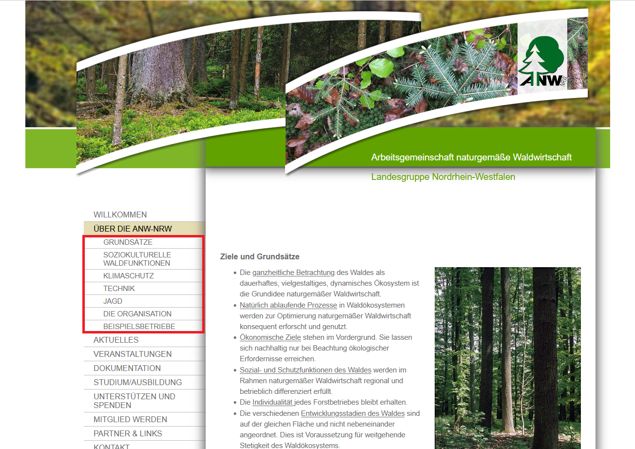 Dort werden die Aufgaben der ANW-NRW erklärt.