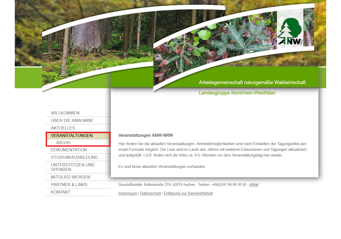Sie finden im Bereich Über die ANW-NRW folgende Informationen: