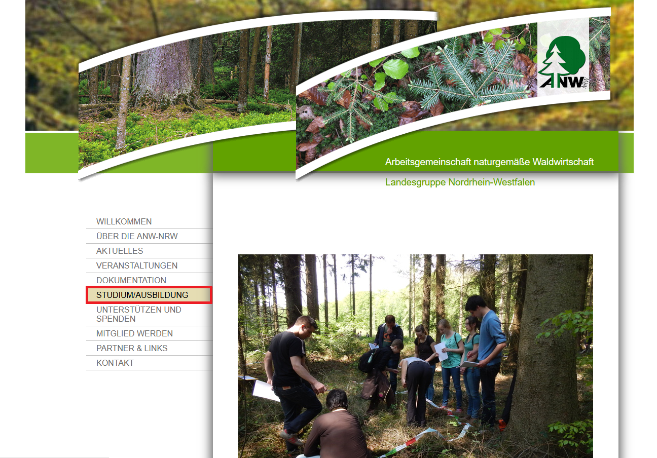 Das ist die Seite der Arbeits · Gemeinschaft naturgemäße Wald · Wirtschaft Landes · Gruppe Nordrhein-Westfalen.